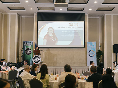 In her Valedictory Address, outgoing 2024 TMAP President Atty. Jacqueline Yu-Villar walked the audience through the TMAP activities and events from the previous year – highlighted by the successful staging of the 1st TMAP International Tax Summit.