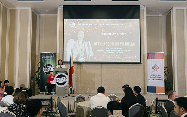 In her Valedictory Address, outgoing 2024 TMAP President Atty. Jacqueline Yu-Villar walked the audience through the TMAP activities and events from the previous year – highlighted by the successful staging of the 1st TMAP International Tax Summit.