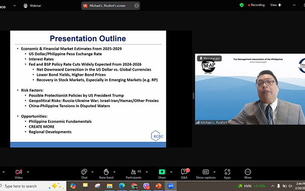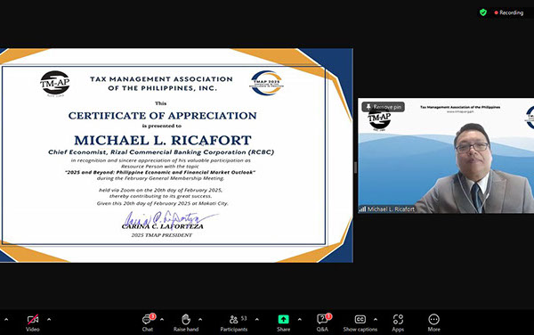 • Mr. Michael L. Ricafort, Chief Economist Treasury Group of the Rizal Commercial Banking Corporation, who gave an overview of the Philippine Economic Outlook: 2025 & Beyond.